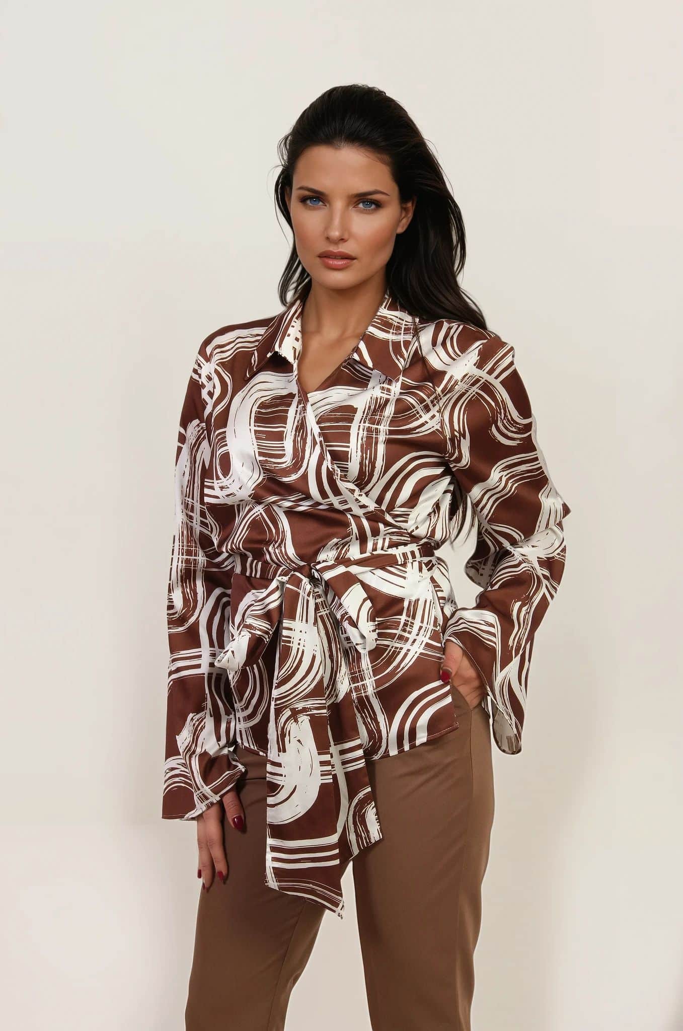 Unesi sofisticirani kontrast u svoj zimski stil uz našu elegantnu bluzu u braon-beloj kombinaciji, dizajniranu za žene koje žele da izgledaju moderno bez odricanja od udobnosti.