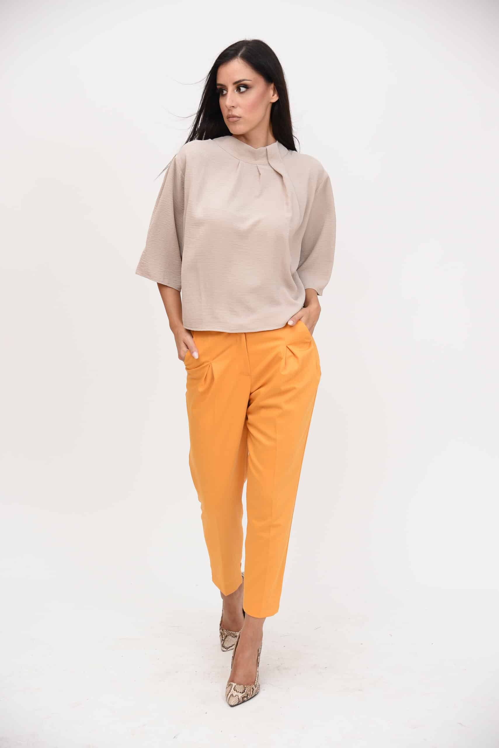 Bluza koja unosi dozu luksuza u svakodnevni izgled – diskretna, ali upečatljiva u svakom detalju. Karamel bluza koja odiše toplinom, stilom i jednostavnom elegancijom. Izrađena od laganog materijala prijatnog na dodir, idealna je za celodnevno nošenje – od poslovnog okruženja do opuštenih trenutaka. Blago nabran deo uz okovratnik daje joj sofisticiran volumen, dok tročetvrt rukavi stvaraju balans između klasičnog i modernog stila. Savršeno se kombinuje sa svetlim ili tamnim pantalonama, kao i sa suknjama srednje dužine.Bluza je dostupna i u bež boji.