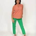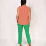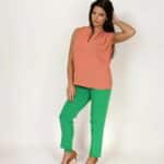 Diskretna elegancija koja se lako transformiše – od poslovnog do casual izgleda. Bluza bez rukava sa prefinjenim „V“ izrezom, izrađena od laganog, prijatnog materijala koji se nežno prilagođava telu. Dostupna u beloj i svetlo braon nijansi, ova bluza spaja jednostavnost i eleganciju, idealna za tople dane i slojevite letnje kombinacije.
