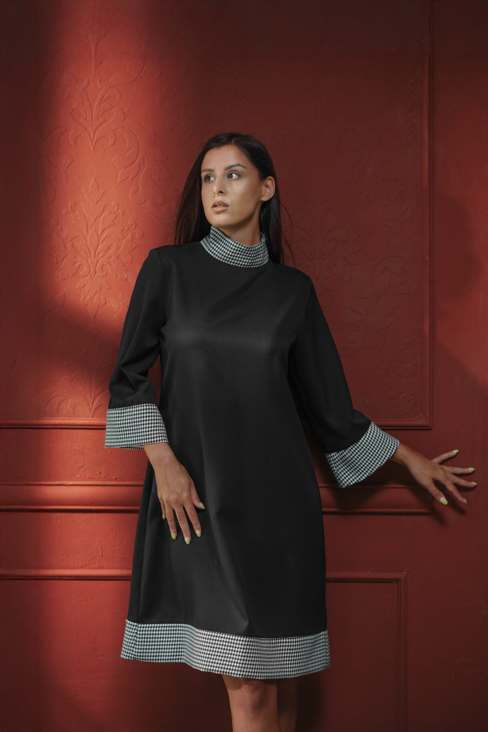 Haljina koja spaja minimalizam, udobnost i prefinjen stil. Dodaj dašak elegancije i prefinjenosti svom izgledu uz crnu haljinu “A” kroja sa kontrastnim detaljima. Izrađena od udobnog materijala koji lepo pada,haljina nudi savršen balans između klasične jednostavnosti i modernog dizajna.
