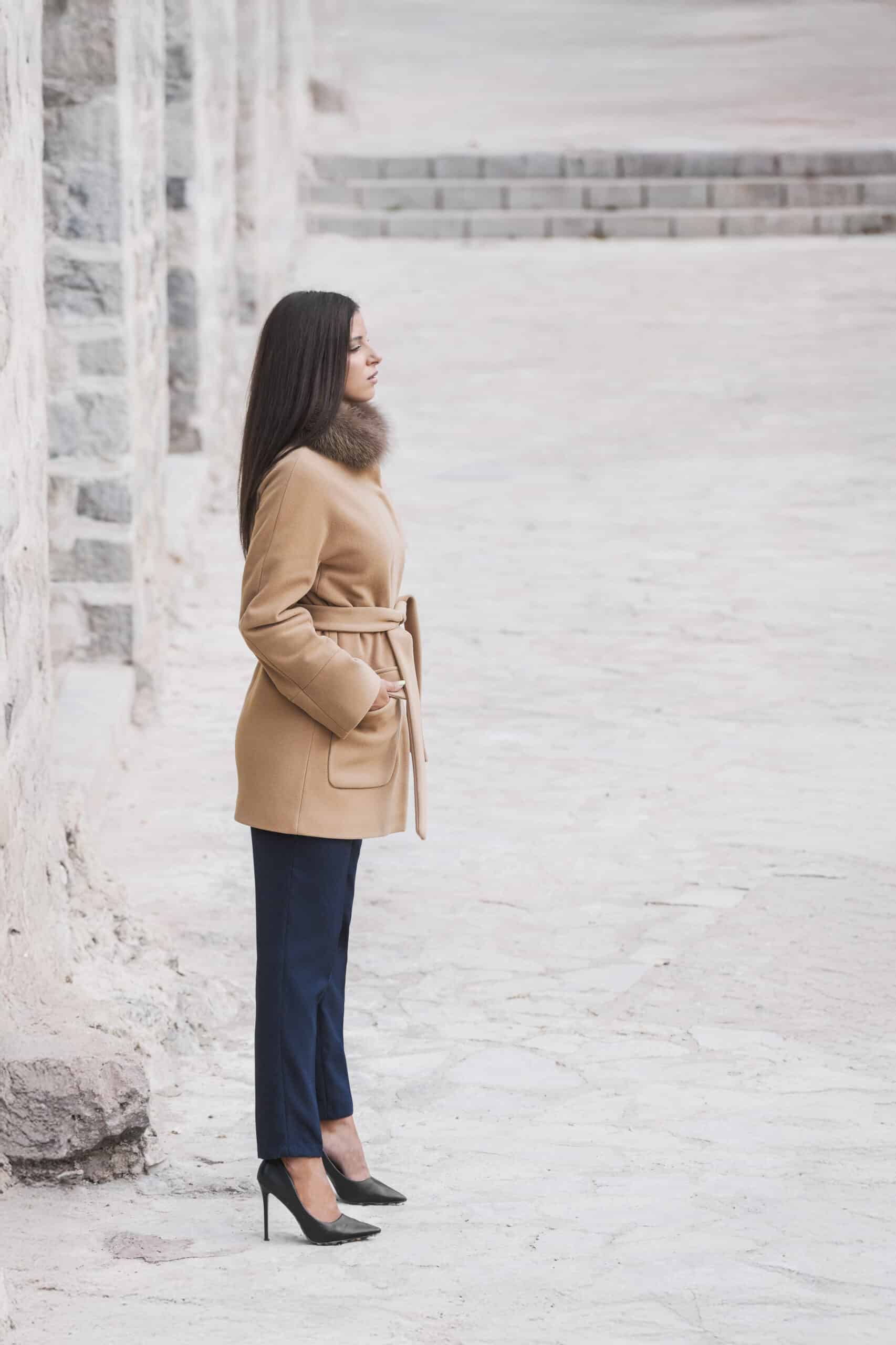 Ovaj kaput nije samo odevni predmet – to je priča o stilu, toplini i samopouzdanju svake žene.Ovaj camel kaput sa krznenom kragnom utelovljuje savršeni sklad luksuza, udobnosti i profinjenog stila. Napravljen od mekanog materijala vrhunskog kvaliteta, pruža toplotu i prijatan osećaj tokom hladnih dana, dok pojas u struku oblikuje siluetu i ističe ženstvenost.Detalji poput raskošne kragne od veštačkog krzna i pažljivo izrađenih džepova čine ovaj kaput komadom koji odiše elegancijom. Idealno se kombinuje sa poslovnim autfitima, ali i večernjim kombinacijama koje traže dozu glamura.