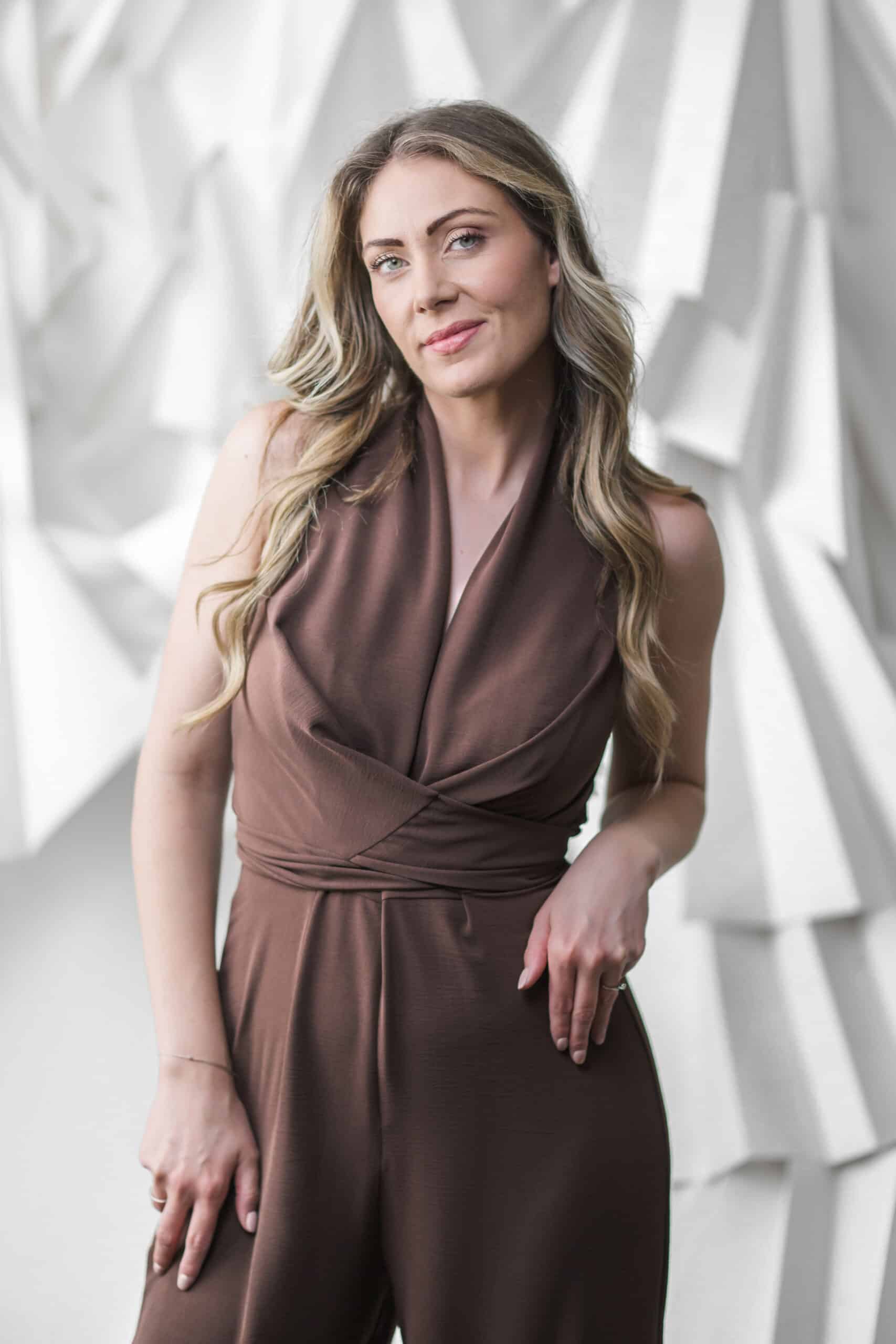 Gornji deo karakteriše nežno drapirani izrez bez rukava koji unosi dozu ženstvenosti i čini model idealnim izborom za dnevne i večernje prilike. Fluidna tkanina prijatno prati liniju tela, dok braon nijansa donosi toplinu i luksuzan izgled koji se lako uklapa u poslovne i elegantne kombinacije.