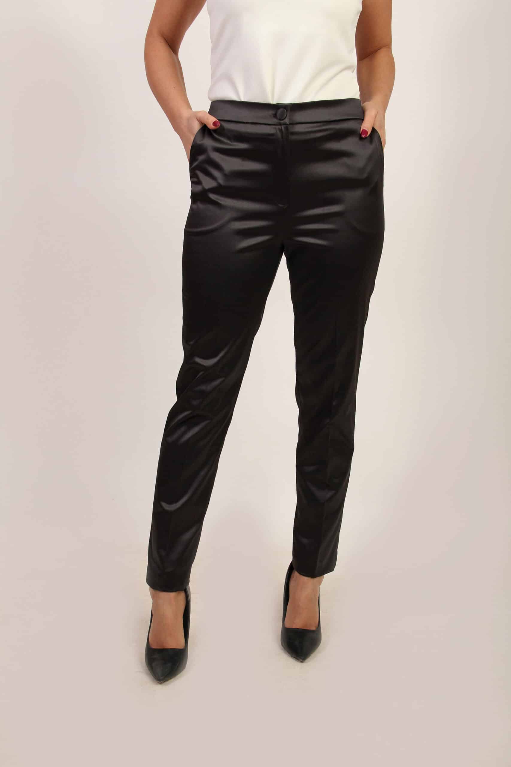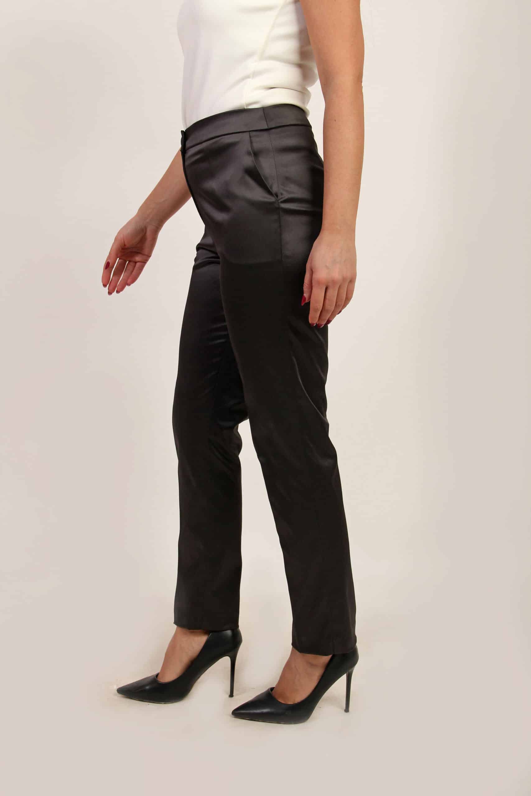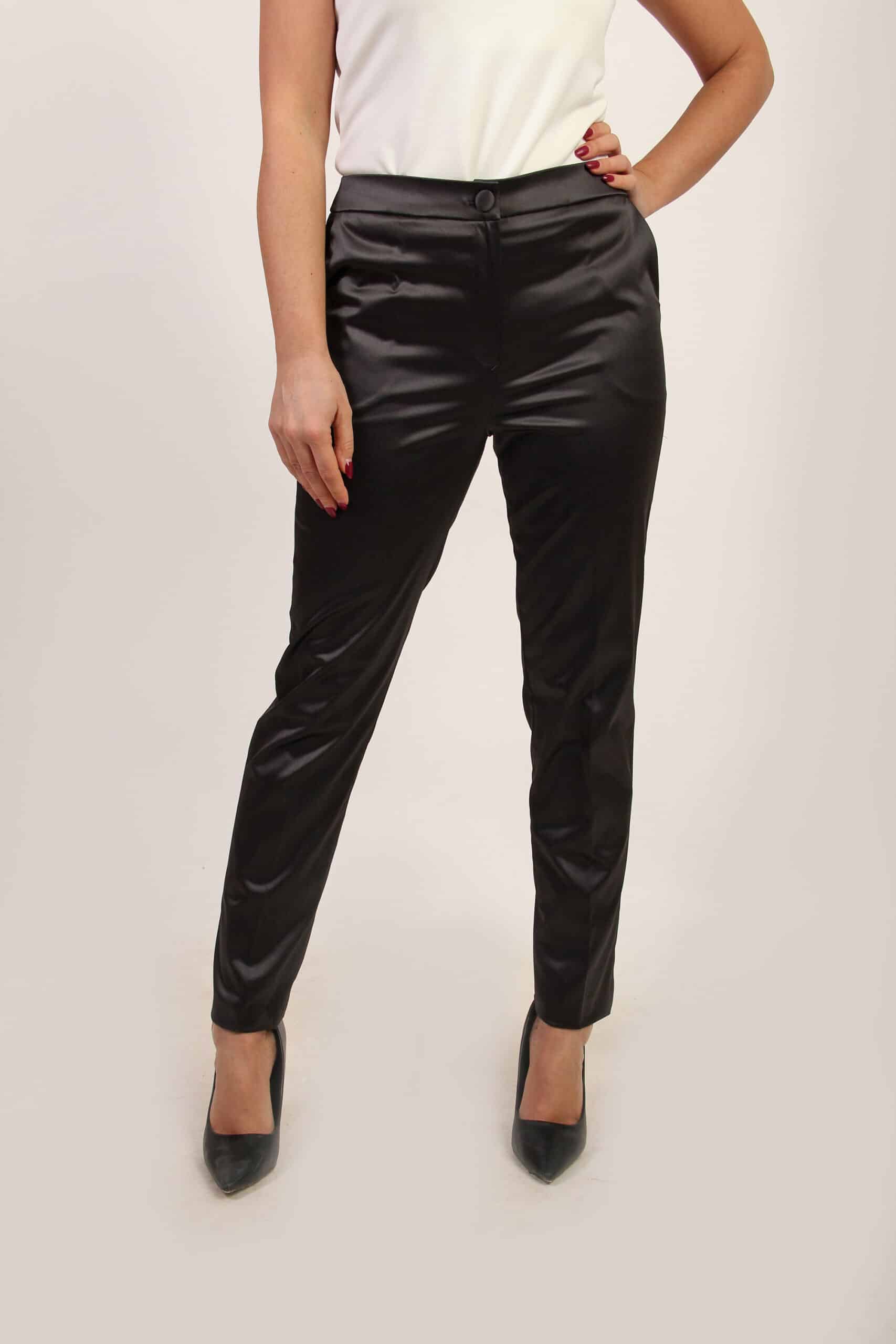 Pantalone visokog struka sa ravnim, blago proširenim nogavicama vizuelno izdužuju siluetu i pružaju izuzetnu udobnost tokom celog dana. Materijal lepo pada, ne gužva se lako i daje profesionalan, ali moderan izgled.