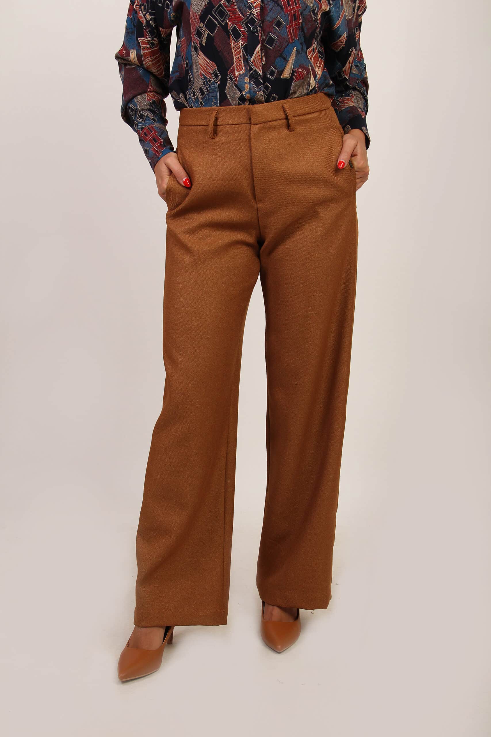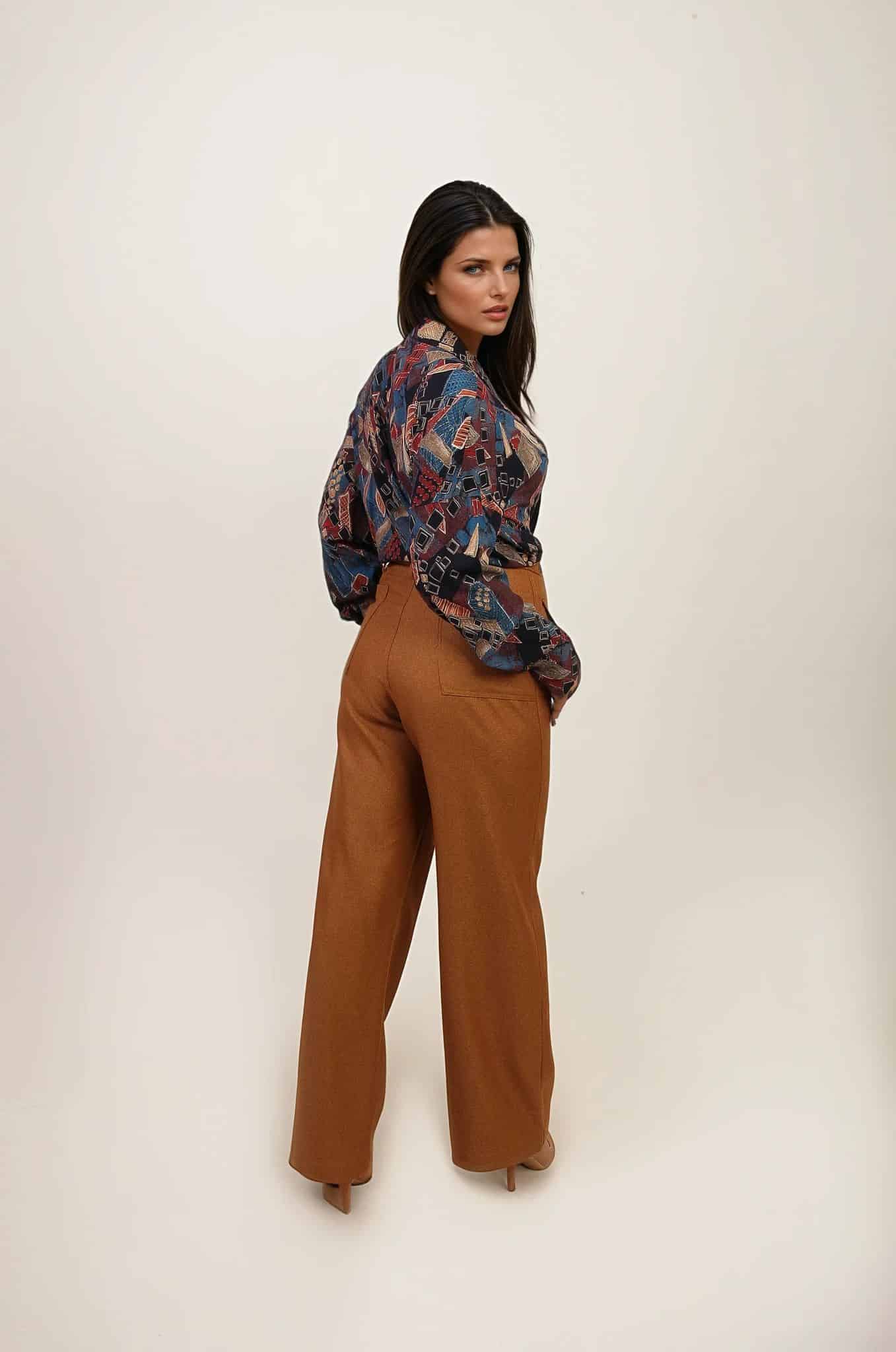 Široke ženske pantalone predstavljaju spoj elegancije, komfora i savršene svakodnevne praktičnosti. Dizajnirane za žene koje žele uredan i moderan izgled bez kompromisa, pantalone nude prirodan pad nogavice koji vizuelno izdužuje siluetu i daje efekt uredne linije tela.Model je izrađen od mekane, prijatne tkanine, idealne za jesen i zimu. Kroj je klasičan, ali moderan: visoki struk oblikuje figuru, dok diskretni džepovi čuvaju funkcionalnost bez narušavanja linije. Neutralna braon boja čini ih savršenim izborom za kombinovanje sa košuljama, rolkama, blejzerima i džemperima.Model koji je odličan izbor za kancelariju, svečane prilike, ali i svakodnevne kombinacije kada želite da izgledate sofisticirano u hodu.