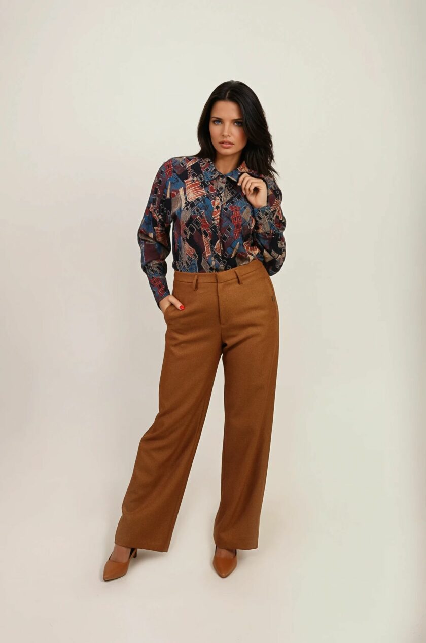Široke ženske pantalone predstavljaju spoj elegancije, komfora i savršene svakodnevne praktičnosti. Dizajnirane za žene koje žele uredan i moderan izgled bez kompromisa, pantalone nude prirodan pad nogavice koji vizuelno izdužuje siluetu i daje efekt uredne linije tela.Model je izrađen od mekane, prijatne tkanine, idealne za jesen i zimu. Kroj je klasičan, ali moderan: visoki struk oblikuje figuru, dok diskretni džepovi čuvaju funkcionalnost bez narušavanja linije. Neutralna braon boja čini ih savršenim izborom za kombinovanje sa košuljama, rolkama, blejzerima i džemperima.Model koji je odličan izbor za kancelariju, svečane prilike, ali i svakodnevne kombinacije kada želite da izgledate sofisticirano u hodu.