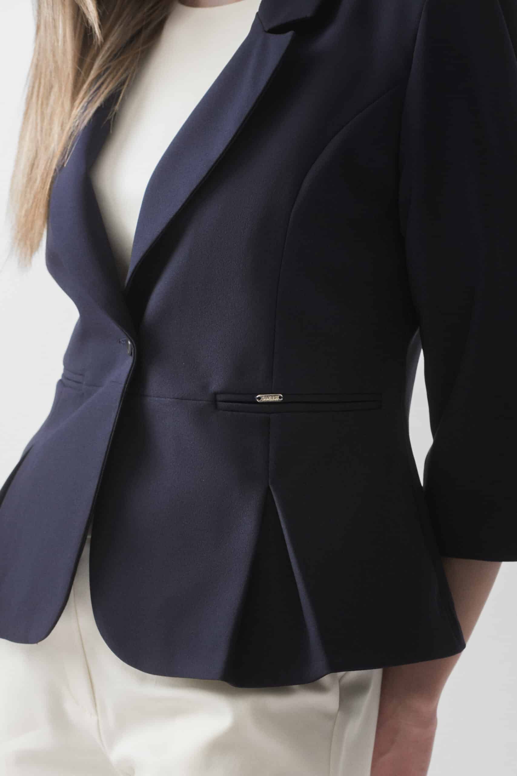 Elegantni ženski sako u teget nijansi predstavlja savršen spoj poslovne elegancije i modernog kroja. Strukturirani reveri i blago strukirani dizajn naglašavaju siluetu, dok kvalitetan materijal pruža udobnost i sofisticiran izgled tokom celog dana. Diskretan peplum kroj pri donjem delu dodaje ženstvenu notu i čini ovaj model idealnim izborom za office kombinacije, poslovne sastanke i formalnije prilike.