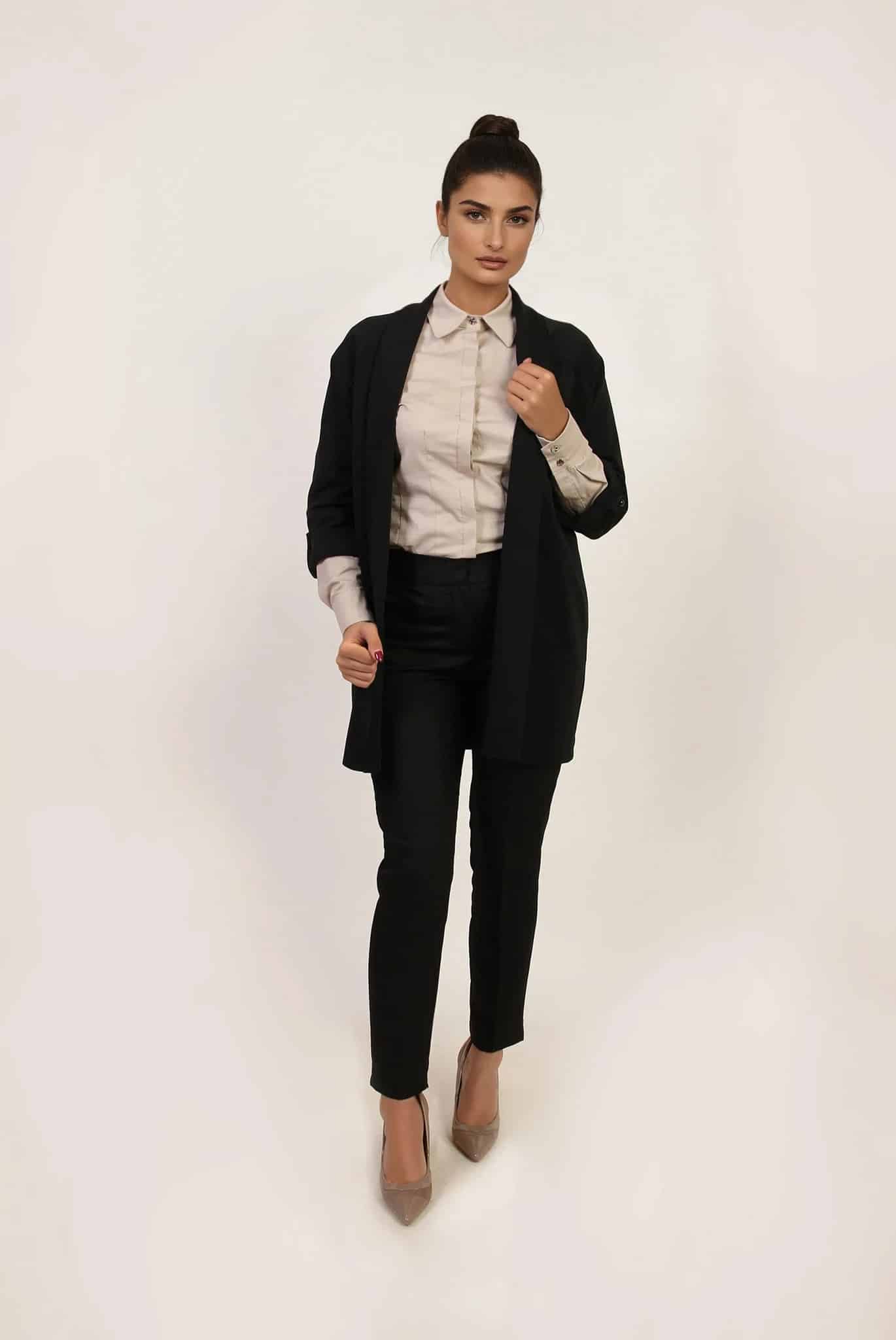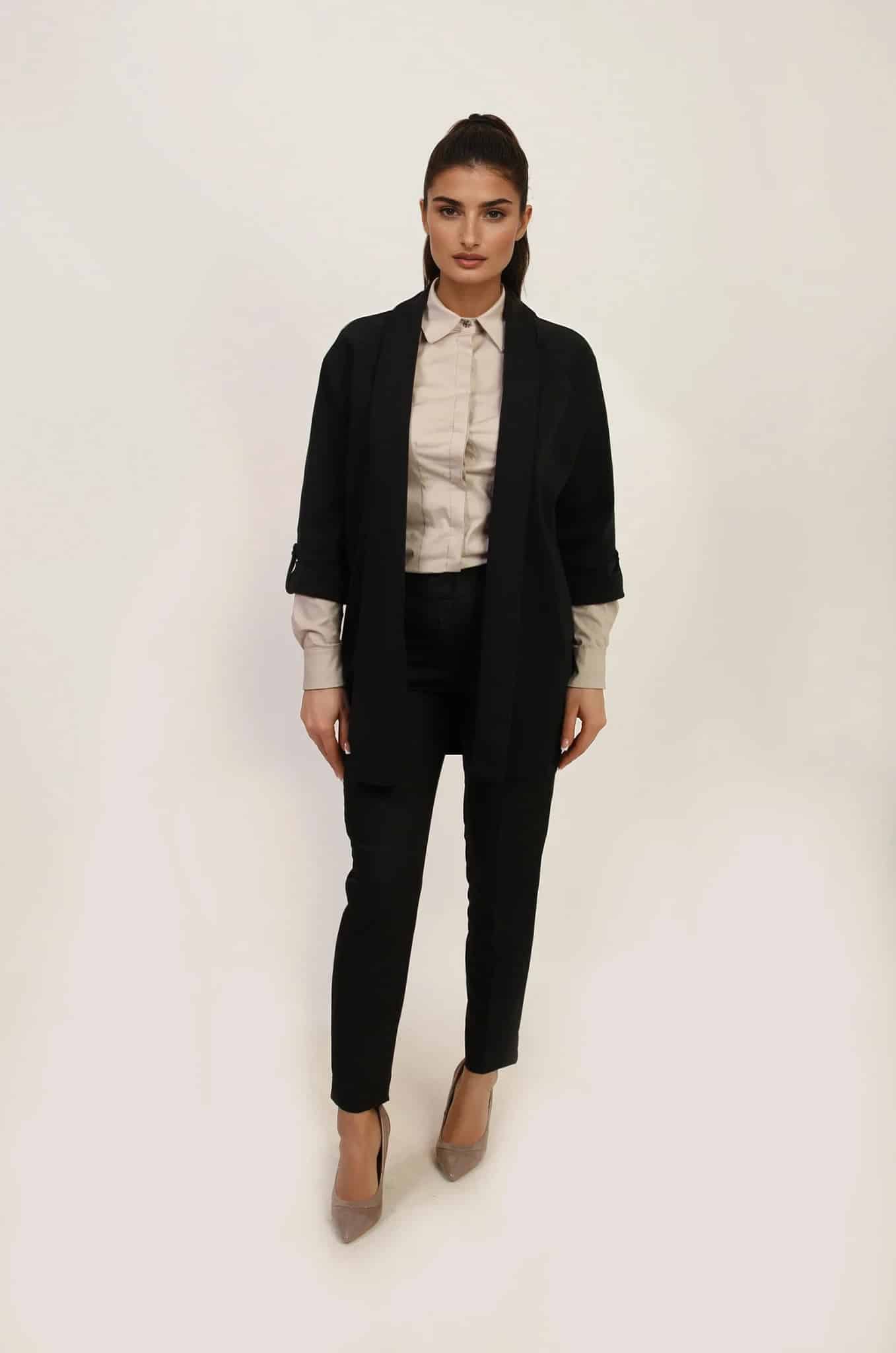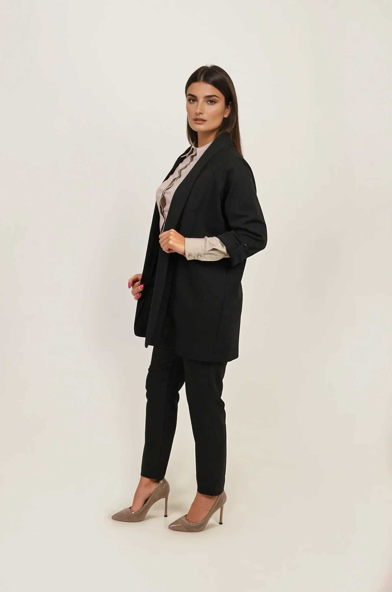 Model sa 3/4 rukavima i čistim linijama vizuelno izdužuje siluetu, dok dužina tunike omogućava lako kombinovanje sa pantalonama, uskim ili ravnim krojem. Jednostavan, ali promišljen dizajn daje mogućnost nošenja i u formalnim i u opuštenijim varijantama — uz košulju, bluzu ili kao samostalan komad.